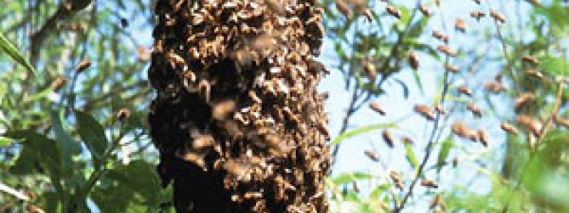 Der Bienenschwarm zieht ein.